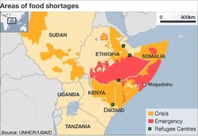 2011년도 당시 동아프리카의 가뭄으로 인한 식량부족 지도