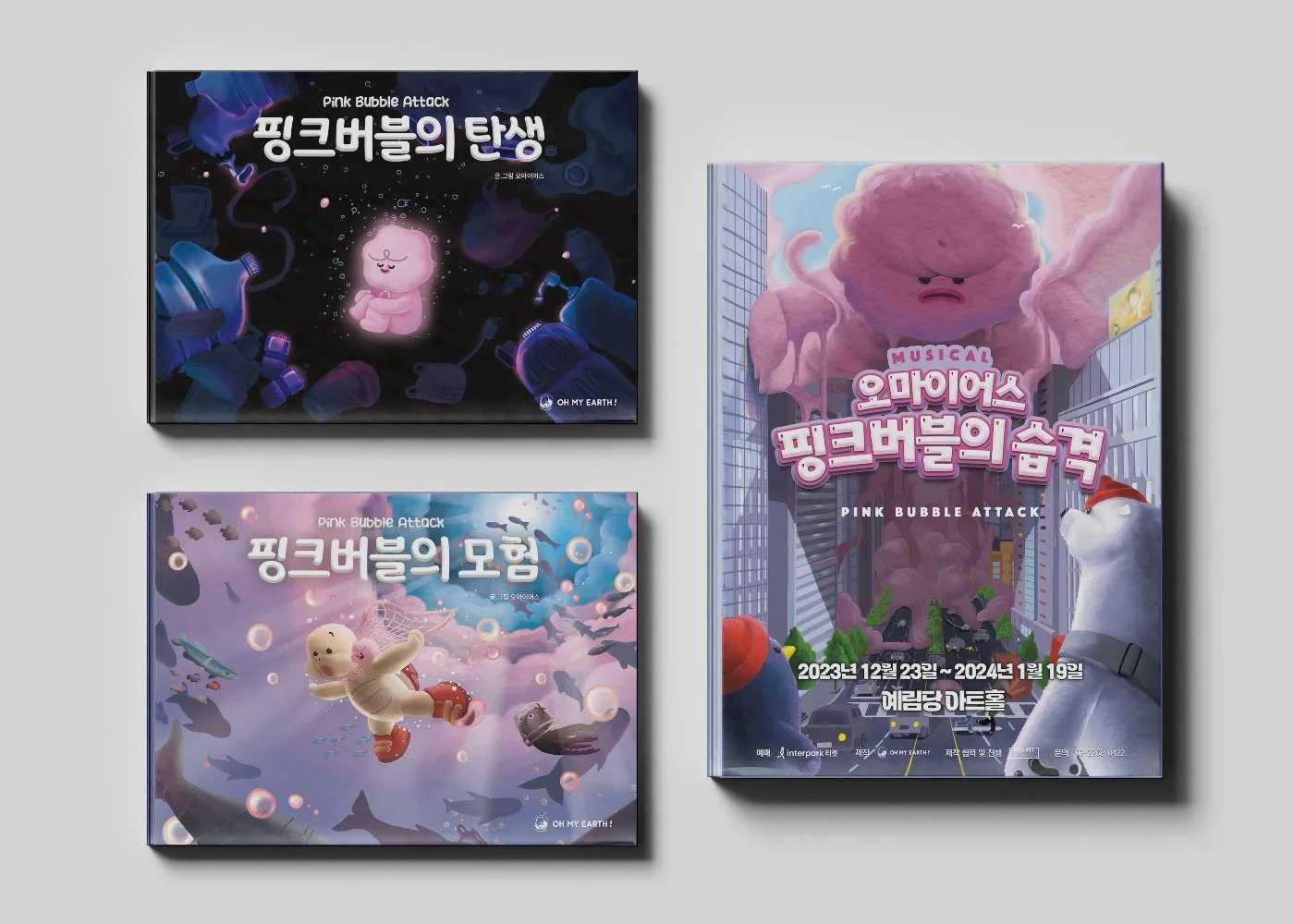 “말씀하신 것처럼, 보통은 재정적 수익을 위해 IP 콘텐츠 개발 후 웹툰, 책, 드라마 등으로 콘텐츠를 확장하는 것이 일반적이지만 오마이어스는 해당 IP를 활용해 ‘핑크버블의 습격’이라는 뮤지컬을 가장 먼저 기획, 제작했습니다. 대표적인 대상은 어린이였지만, 어린이와 함께 현장을 함께 방문한 성인들까지 감동과 교훈을 느끼는 ‘전연령을 매료하는’ 콘텐츠로서의 실험을 해본 것이었는데요. 결과는 대성공이었습니다. 사실 어린이 뮤지컬은 ‘아이들이 좋아하는 인형탈, 신나는 음악 등의 요소만 잘 배치해도 된다’는 기본 문법이 있는데, 저희는 뮤지컬 업계에서 활발하게 활동 중이신 김문정 감독님과 대극장 배우를 섭외하여 극을 만들었습니다. IP 자체는 톡톡튀고 귀여운 컨셉이기 때문에 그 자체로 아이들이 열광할 수 있는 요소가 되었지만, 그저 아이들의 보호자로서 현장을 찾았던 성인들까지 높은 퀄리티의 음악과 대사, 스토리를 보고 ‘기후행동’이라는 개념과 중요성에 대해 다시 한 번 깨닫는 시간이 되었다는 많은 리뷰를 많이 받았어요. 저는 문화와 콘텐츠가 주는 감동, 울림이 새삼스럽지만 중요한 인식 개선의 계기가 된다는 점을 다시 한 번 확신하게 되었습니다.”