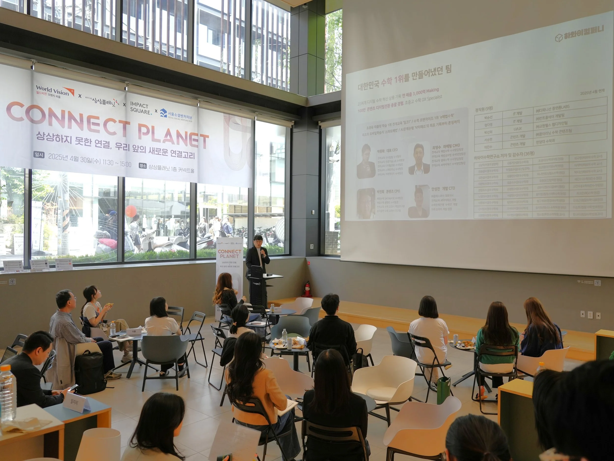‘커넥트 플래닛’은 성수동 KT&G상상플래닛과 역삼동 서울소셜벤처허브에 입주 중인 소셜벤처들이 각 기관의 사업담당자, 파트너 조직, 그리고 서로와의 연결을 통해 협업 가능성을 확장하는 계기를 만들고자 기획 되었습니다. 임팩트스퀘어, KT&G상상플래닛, 월드비전, 서울소셜벤처허브가 공동 주최했으며, 13개 스타트업과 주최 측 실무진, 스타트업 투자자가 참여해 활발한 교류의 장을 펼쳤습니다.